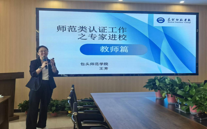 培训讲座会上,王芳院长结合包头师范学院物理科学与技术学院物理学师范类专业认证工作,从“准备内容、认证理念、需要了解的内容”三个方面对专业认证专家进校注意事项进行了详细的讲解。