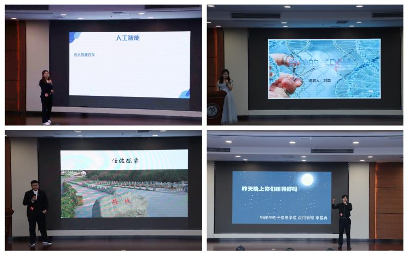 来自于各个学院的17名选手参加本次比赛。参赛选手们的科普讲解妙语解颐、生动有趣,有的讲解了“怪坡现象”的形成、海绵城市的排水系统;有的讲述了樱桃萝卜的生长环境与营养价值、中医药与传统文化的关系;有的科普了无创血糖检测仪的原理、介绍了中国巡天望远镜—旗舰级空间天文望远镜建成的科学意义;有的选手讲述了褪黑素对于睡眠的重要性、奇妙的基因编辑技术和各种生物的神奇有趣的生命活动等,生动展现了生命的伟大和神奇。