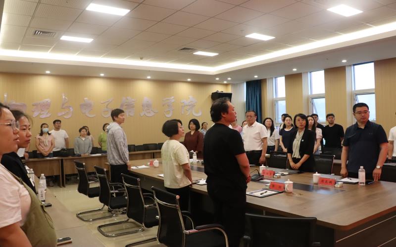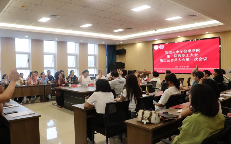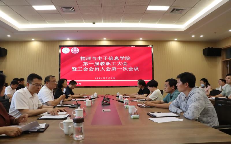 7月3日下午,物理与电子信息学院第一届教职工大会暨工会会员大会第一次会议在知行楼C605会议室召开,学院党委书记李喜军、院长李培芳、党委副书记马新军、副院长周昆鹏、学院分工会主席韩元春以及学院全体教职工参会。会议由学院党委副书记马新军主持。