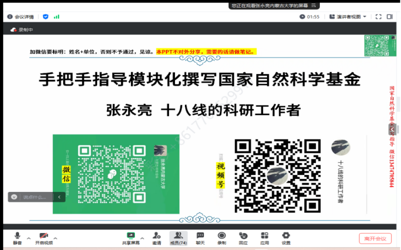 为推动学院2025年国家自然科学基金项目申报工作,助力学院科研实力进一步实现突破,全面提升项目申报质量,10月14日,我院邀请内蒙古大学张永亮教授在腾讯会议端举办了2025年度国家自然科学基金申报专题讲座。我院教师,相关学院的博士教师、副高及以上职称教师代表,共八十余人参加。讲座由院长李培芳教授主持。