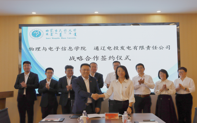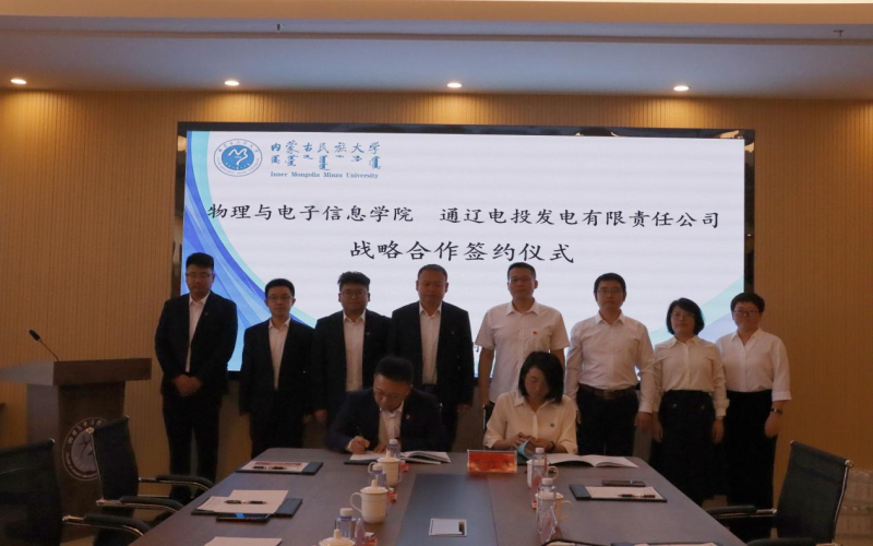 为深化校企合作,提高电气专业人才培养质量,2024年10月24日,物理与电子信息学院与通辽电投发电有限责任公司在知行楼C605会议室签署了战略合作协议。物理与电子信息学院院长李培芳、党委副书记马新军、副院长周昆鹏、电气教研室主任陈玉芳、电气专业专任教师李丹丹,通辽电投发电有限责任公司执行董事、总经理关海平、副总经理杨天翔、计划部副主任白小宇、综合部副主任李雪、综合部文书汪萍、秘书孙翀出席签约仪式。签约仪式由党委副书记马新军主持。