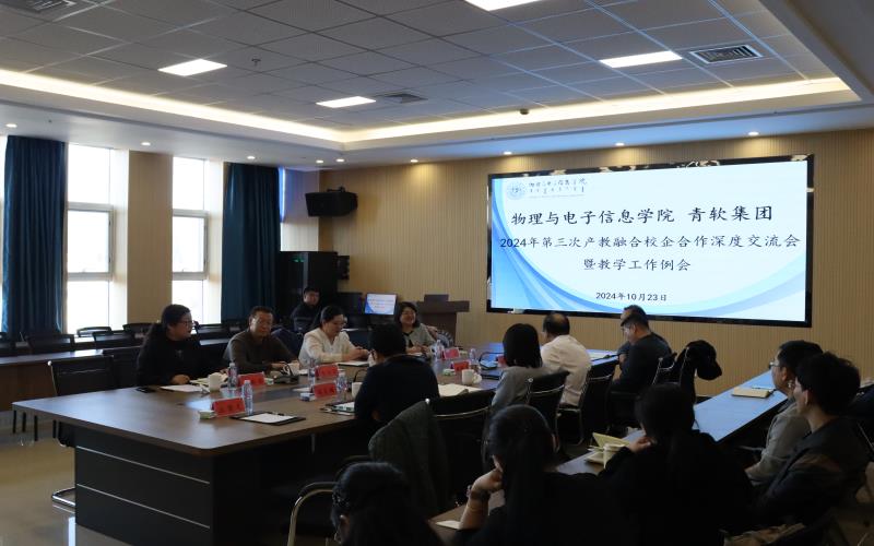 10月23日上午,物理与电子信息学院在知行楼C605会议室召开物理与电子信息学院-青软集团2024年第三次产教融合深度沟通交流会暨教学工作例会。学院领导班子、青软集团总裁李战军、青岛青软晶尊微电子科技有限公司总经理张侠、青软集团总部基地运营与交付中心总经理吴希英、青软集团校企合作部总监杨秀霞、学院电子专业、电气专业、应物专业全体教师参加,会议由学院党委书记李喜军主持。