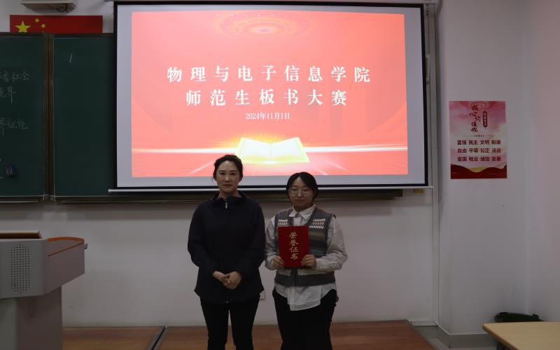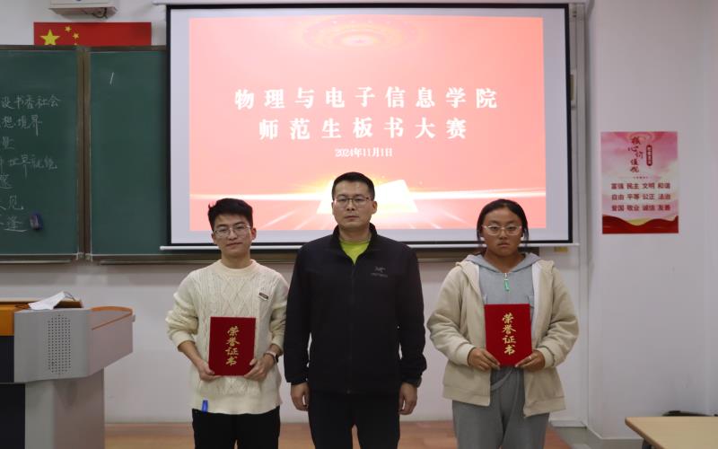 比赛现场,同学们准确把握字体规范性、书写工整性、书写速度、准确性以及布局的合理程度,每一笔每一划都凝聚着他们的教学热情和才华,充分展示了扎实的师范技能与素养。经过激烈角逐,24电气安米烨获得一等奖;24物理卓越班葛晓楠、23物理1班丁晟获得二等奖;24物理卓越班苏紫筠、24物理1班姜 凤楠、24物理卓越班冷柯欣获得三等奖;24物理1班闫琪若、24物理1班贾天宇、24物理1班彭琳、24物理卓越班李汭芯、24物理1班王子怡、24物理2班海日罕、24物理1班邱怡琳、24物理1班澳云毕力格、24物理1班小雪、24物理卓越班任天娇获得优秀奖。