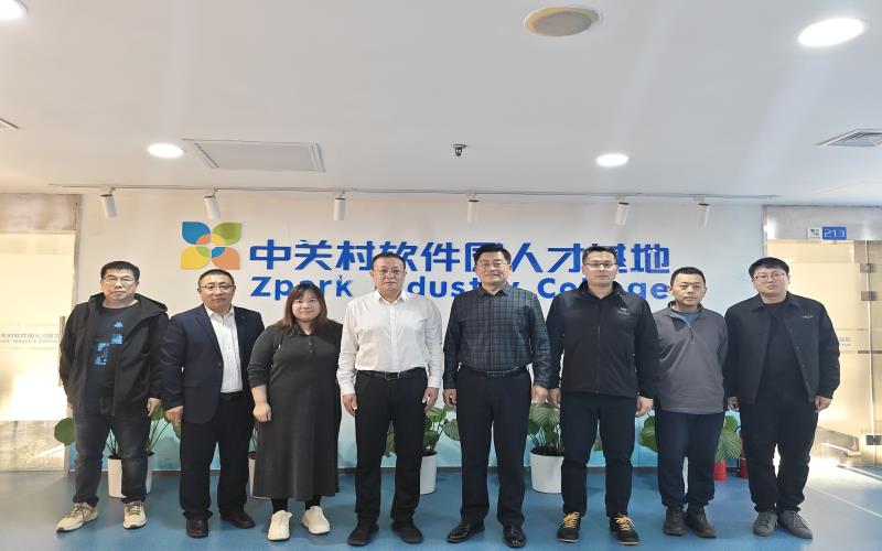 院企双方在中关村软件园实践教育发展中心进行座谈。中关村软件园实践教育发展中心主任梁浩、副主任白然然,院校合作总监李建国、教育研究院院长王伟、就业总监李萍、院校合作专员闫鹏怀参加座谈。