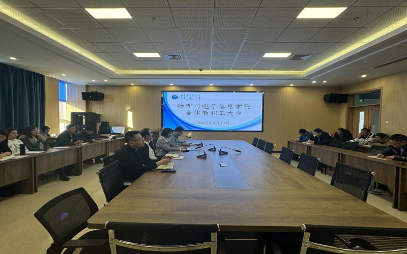 2月19日下午,物理与电子信息学院在知行楼C605会议室召开全体教职工会议。学院领导班子、全体教职工参加会议,会议由学院党委书记李喜军主持。