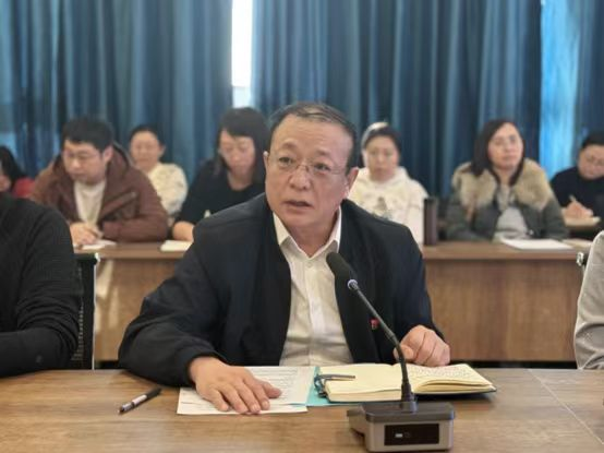李喜军书记传达学校干部大会精神,并就大会提出的工作要求安排部署了学院2025年的工作,进一步强调全体教职工要明确任务、压实责任,不断夯实学院的发展基础。