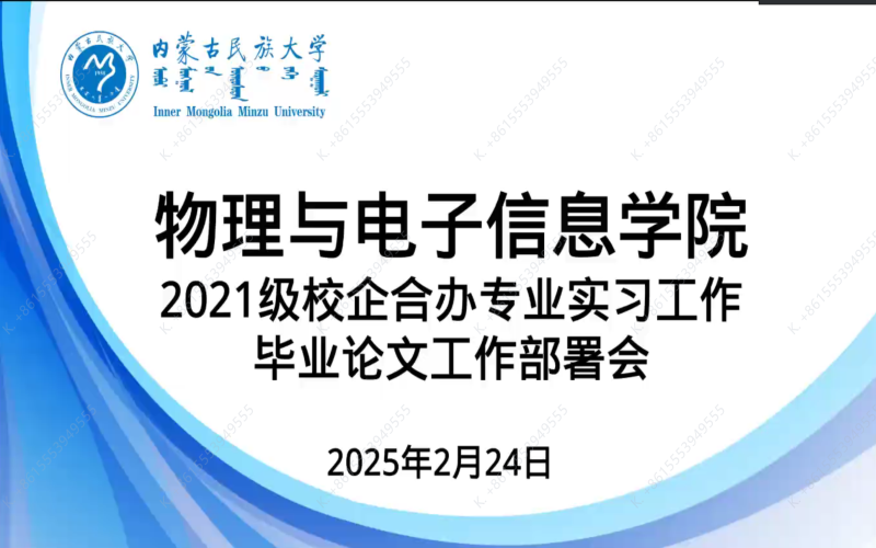 2月24日晚7点,学院通过线上会议的形式召开2021级校企合作专业实习工作毕业论文工作部署会。学院党委副书记马新军,副院长周昆鹏,青软基地总部基地总经理吴希英,电子系主任丛梦龙,应用物理教研室主任郭烜,2021级校企合作专业班班主任及2021级校企合作专业全体毕业生参加会议。会议由校企合作经理王利阳主持。