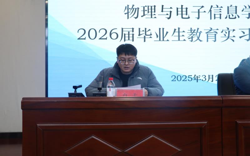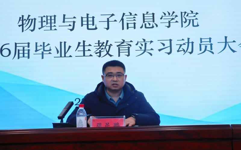 3月2日下午,学院在图书馆小报告厅召开2026届毕业生教育实习动员大会。学院副院长周昆鹏出席会议,物理教育教研室主任冯立芹、实习带队指导教师以及2022级物理学专业全体学生生参加会议。会议由学工办主任白于主持。