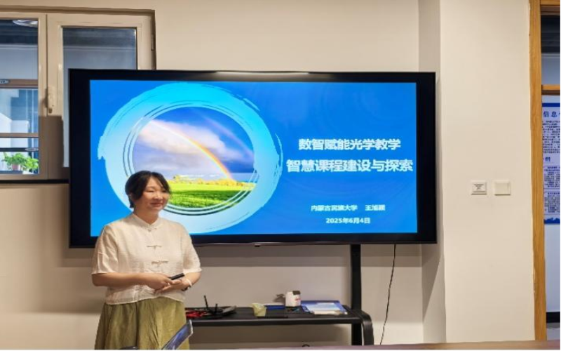 会议中,王旭颖老师以“数智赋能光学教学——智慧课程建设与探索”为主题,进行了深入的经验分享。王老师结合光学课程建设实例,聚焦线上课程资源及知识图谱建设,详细阐述了如何将零散的知识点有机串联,构建完整知识体系,为学生搭建高效学习框架,全方位展示了智慧课程建设的实施路径与关键环节。