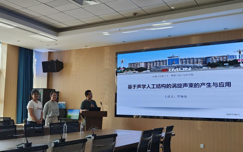 罗艳春博士主要讲述整数和分数阶声涡旋的产生及其在粒子操控、声通信等方面的应用。“声涡旋”是一种携带轨道角动量的特殊声波,其波前呈螺旋状,形成中心声压为零的场强分布。这种独特的声场在非接触式粒子操控(如旋转、捕获和输运微小物体)及新型声通信(利用拓扑电荷作为独立信道实现并行数据传输)等领域展现出重要的应用潜力,为精密操作和信息传输提供了新手段。