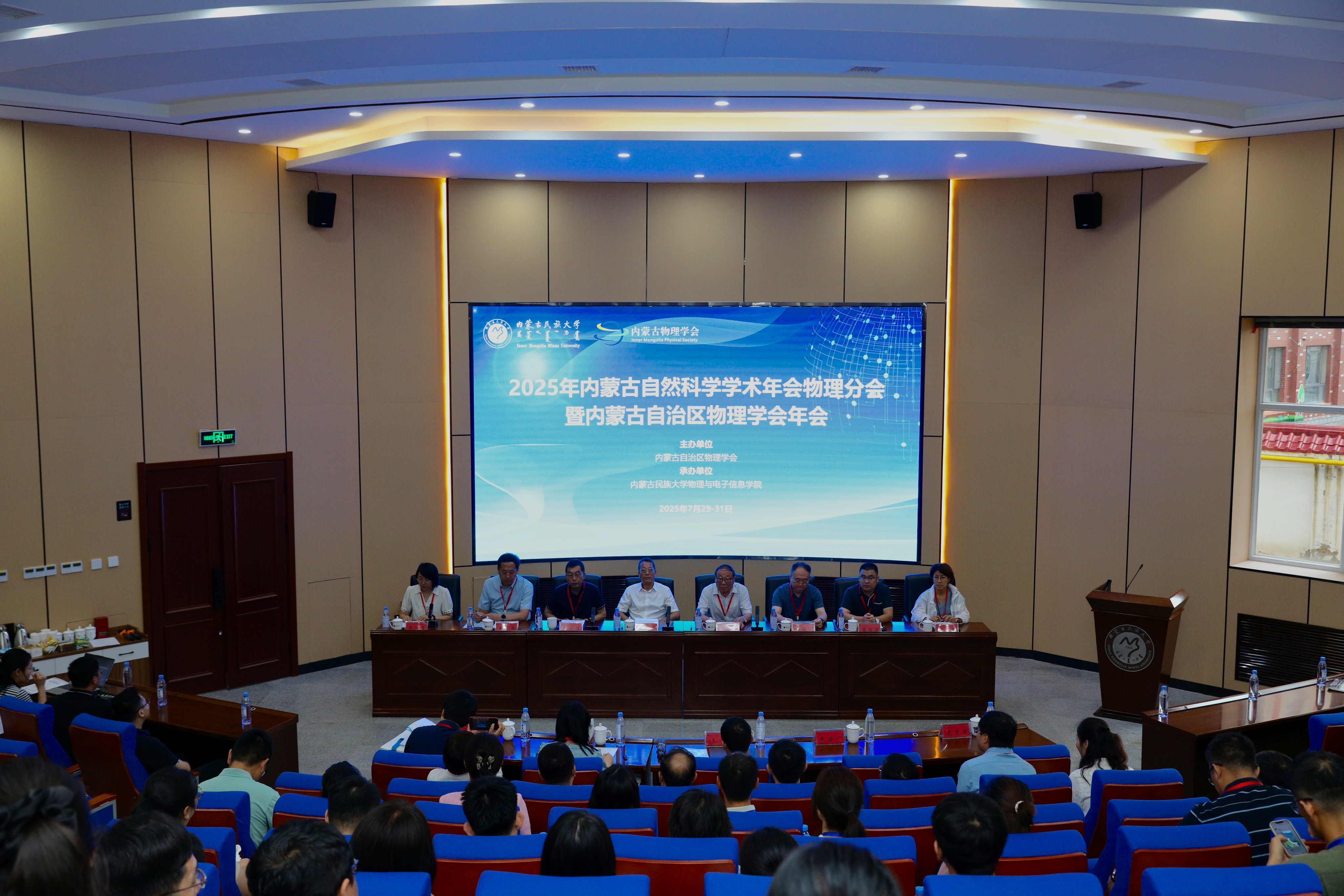 7月29日-7月31日,2025年内蒙古自然科学学术年会物理分会暨内蒙古自治区物理学会年会在内蒙古民族大学召开。本次会议由内蒙古自治区物理学会主办,内蒙古民族大学物理与电子信息学院承办。内蒙古民族大学党委委员、副校长杨恒山,内蒙古自治区物理学会理事长李前忠,监事长班士良,副理事长兼秘书长、内蒙古大学物理科学与技术学院执行院长赵国军,副理事长、内蒙古师范大学物理与电子信息学院院长曹永军,副理事长、内蒙古师范大学附属中学副校长霍俊国,副秘书长、内蒙古大学屈媛,中国科学技术大学、国家自然科学奖获得者杜增义研究员,燕山大学、长江学者王霖教授,燕山大学、国家优青高国英教授,以及从事物理学教育科研工作的区内外专家、学者110余人参加会议。开幕式由物理与电子信息学院院长李培芳主持。