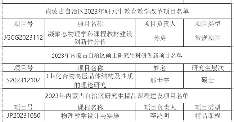 近日,内蒙古自治区教育厅公布了2023年研究生教育项目立项名单,我院申报的3个项目获批。其中研究生教育教学改革常规项目1项,硕士研究生科研创新项目1项,研究生精品课程建设项目1项。