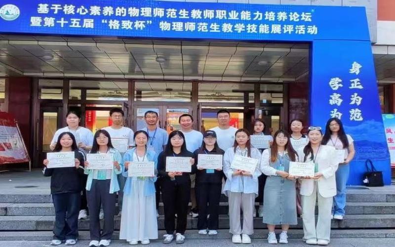 一次比赛、一轮磨炼、一番成长、一份收获。第十五届“格致杯”全国物理师范生教学技能展评活动,不仅赛出了我院物理师范生的专业水平,也激励我校师范生在科研学习中不断探索向下扎根、向上成长的钻研精神。