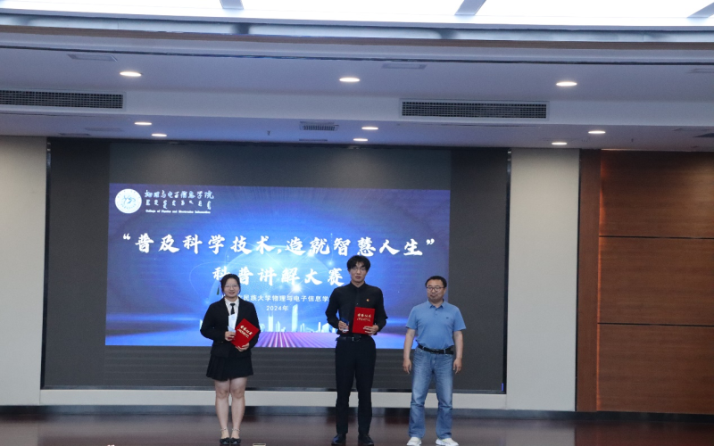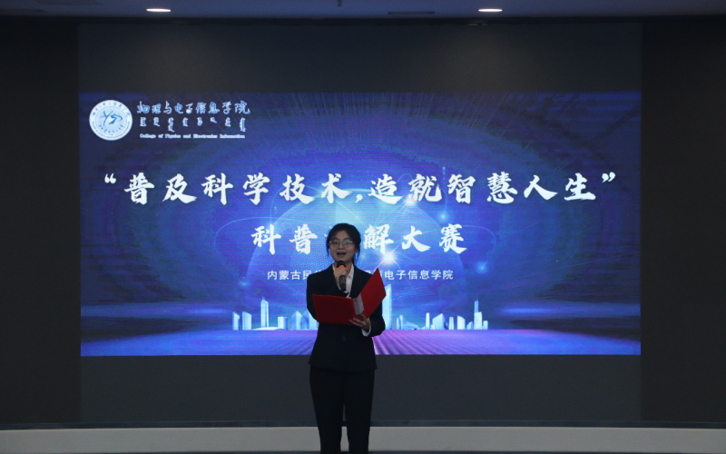 为深入学习贯彻党的二十大精神,落实贯彻习近平总书记关于“科技创新、科学普及是实现创新发展的两翼,要把科学普及放在与科技创新同等重要的位置”的重要指示精神,6月28日晚,由物理与电子信息学院组织举办的“普及科学技术,造就智慧人生”科普讲解大赛在图书馆小报告厅圆满落幕。物理与电子信息学院党委副书记马新军教授、物理与电子信息学院韩伟副教授、物理与电子信息学院欧天吉副教授、物理与电子信息学院综合办公室主任王旭颖、物理与电子信息学院团总支副书记哈斯额尔敦担任比赛评委。180余名学生共同观摩比赛。比赛由学院学生分会文艺部秦源主持。