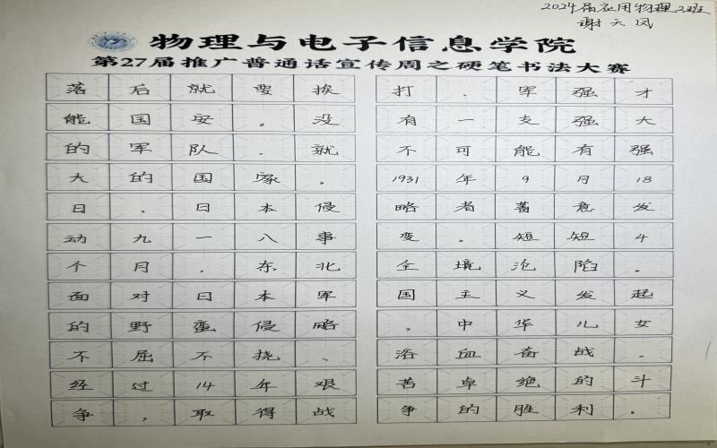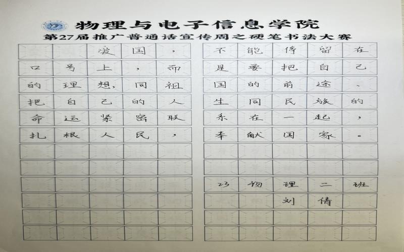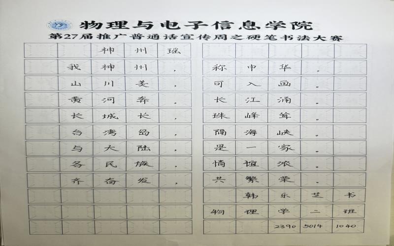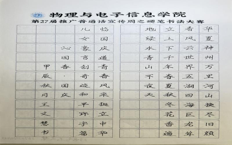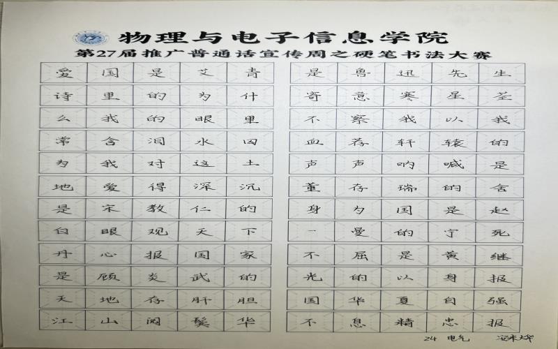 为加大推普力度,提高学生对国家通用语言文字的热爱与重视,规范使用汉字的意识和能力,9月18日晚,学院在知行楼C605举办了一场精彩纷呈的书法比赛。