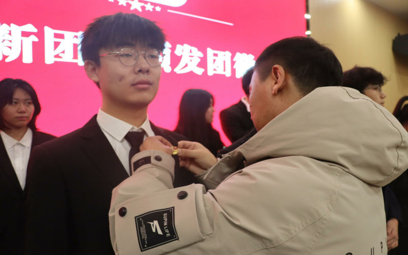 为新发展团员佩戴团徽